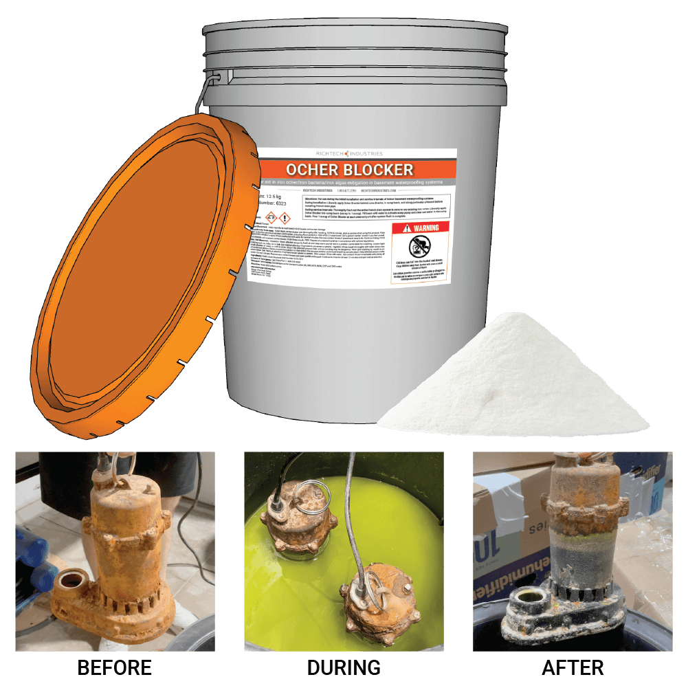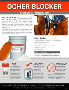 Iron ocher can severely impact the functionality of an interior drainage system. Richtech now offers a simple way to mitigate the growth of iron ocher deposits in the sump basin and interior drainage system.