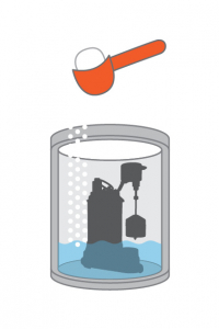 Ocher Blocker is used to break up the slimy iron ocher so it can be flushed out of the system and pumped away. When added to water in the basin, Ocher Blocker will attack and break up the iron ocher deposits that have formed on the pump and along the basin walls. Its effectiveness increases the longer it can stay in the basin before being pumped out. In water with high iron bacterial content, it’s normal for a green color to appear while the Ocher Blocker is working.