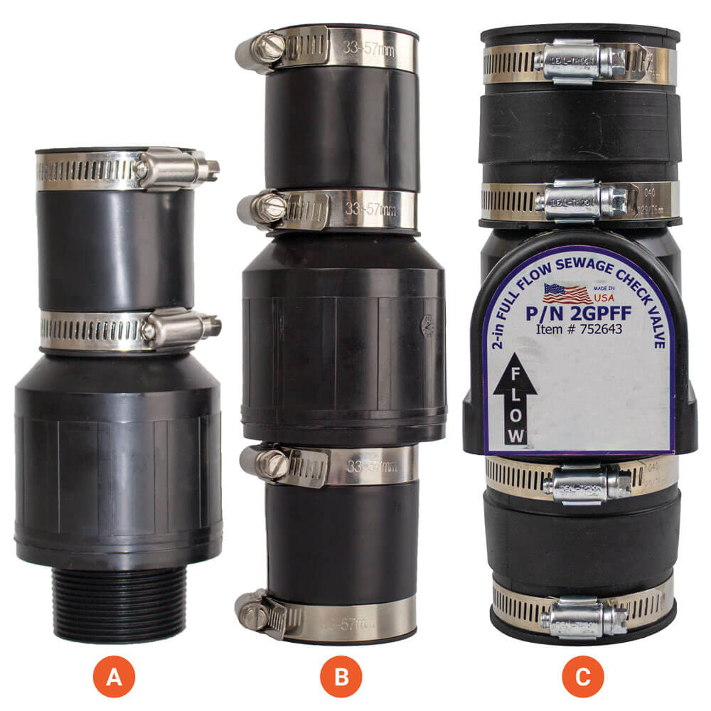 Choose from 1-1/2” for most sump pumps or 2” for our line of sewage ejector pumps.