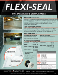 Flexi-Seal exceeds ASTM E-1745 requirements for a vapor and moisture barrier. Flexi-Seal conforms to all building code requirements for use in crawl space encapsulation.